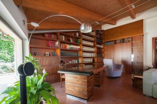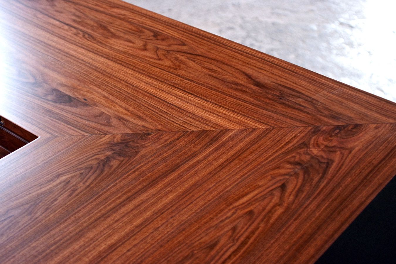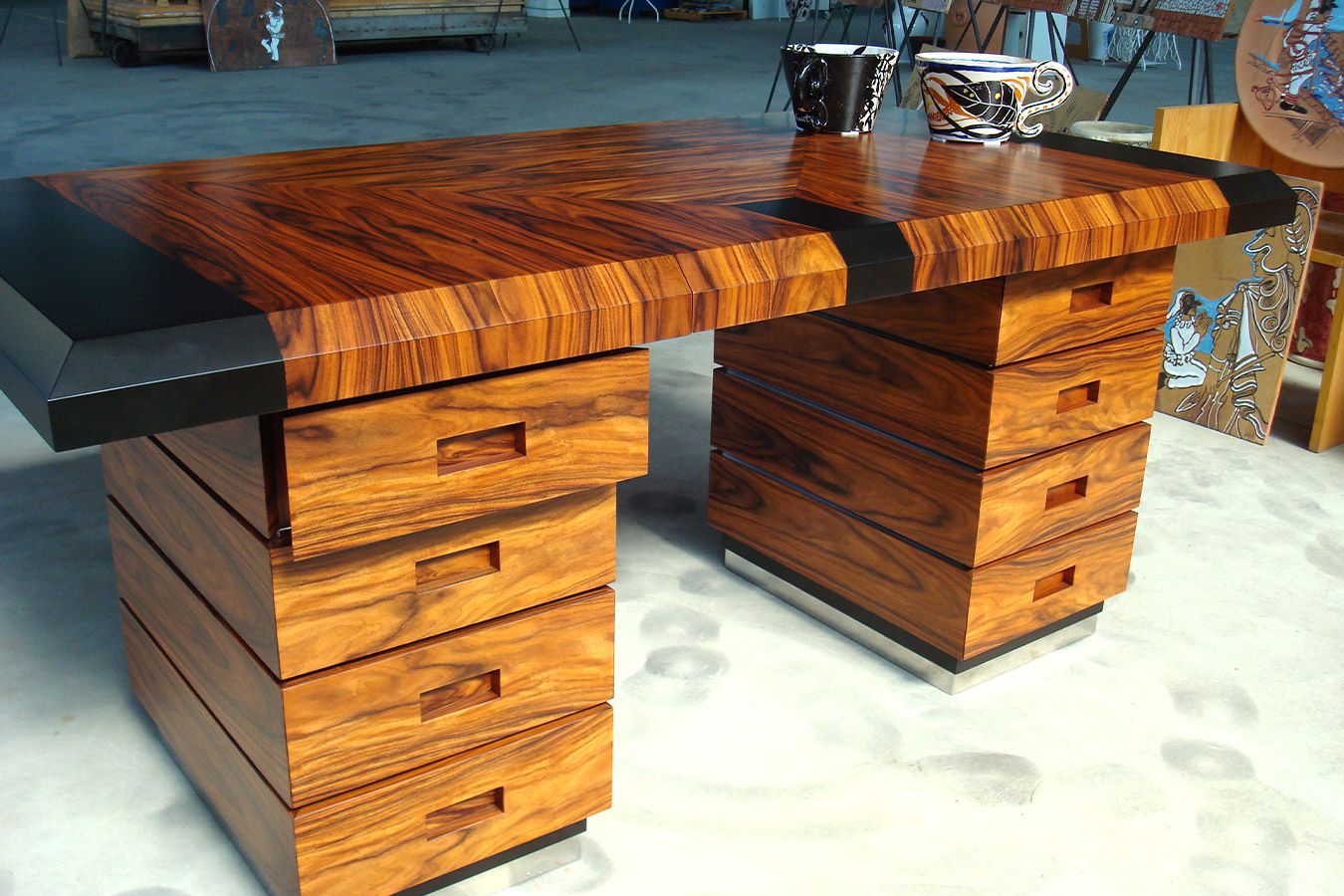 Scrivania presidenziale in ebano e palissandro santos con otto cassetti e sottomano per computer portatile